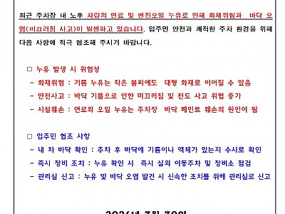 지하주차장 내 차량 누유 점검 및 관리 안내