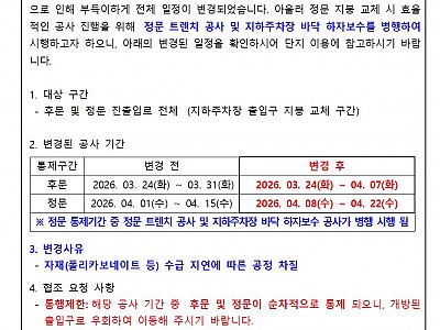 지하주차장 출입구 통제 일정 변경 안내